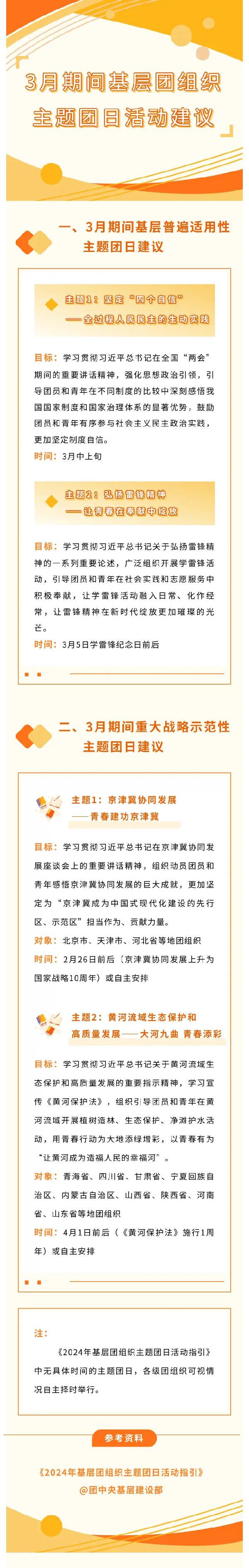 此前团团向大家发布了《2024年基层团组织主题团日活动指引》,那么3月期间有哪些可以举办的活动呢?