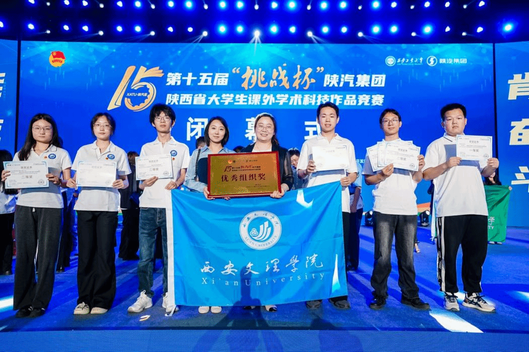 5月24日,由共青团陕西省委、陕西省委教育工委、陕西省科学技术协会等联合主办的第十五届“挑战杯”陕汽集团陕西省大学生课外学术科技作品竞赛在西安工业大学圆满落幕。本届赛事吸引了全省86所高校的991件作品参与角逐,经多轮评审,最终393件作品入围终审决赛。我校学子以卓越的创新能力和扎实的科研素养斩获一等奖3项、二等奖3项、三等奖2项,进入终审决赛总数较往届最高纪录增长50%,并荣获“优秀组织奖”称号。