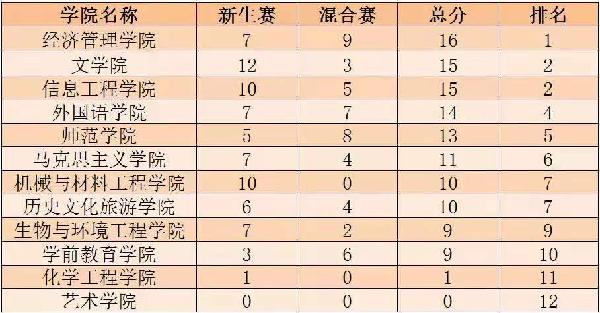 注:积分相同的学院按首字母顺序排序,每场比赛结束后积分榜实时更新。